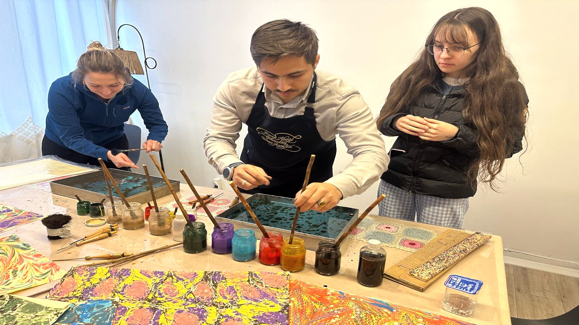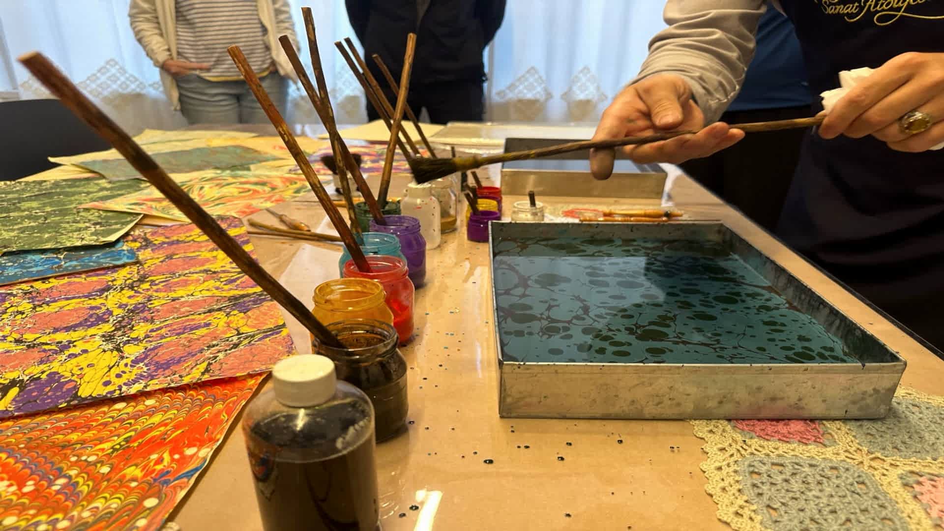 Practical Experience - Watch the colours dance on the water as you learn Ebru techniques step by step with expert guidance.